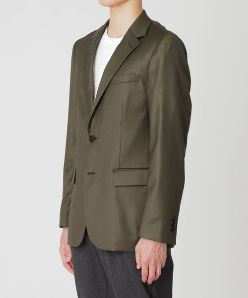着心地の良さを意識し、肩部分を割縫いにし、パット無しのナチュラルショルダーで仕立てたテーラードジャケットです。